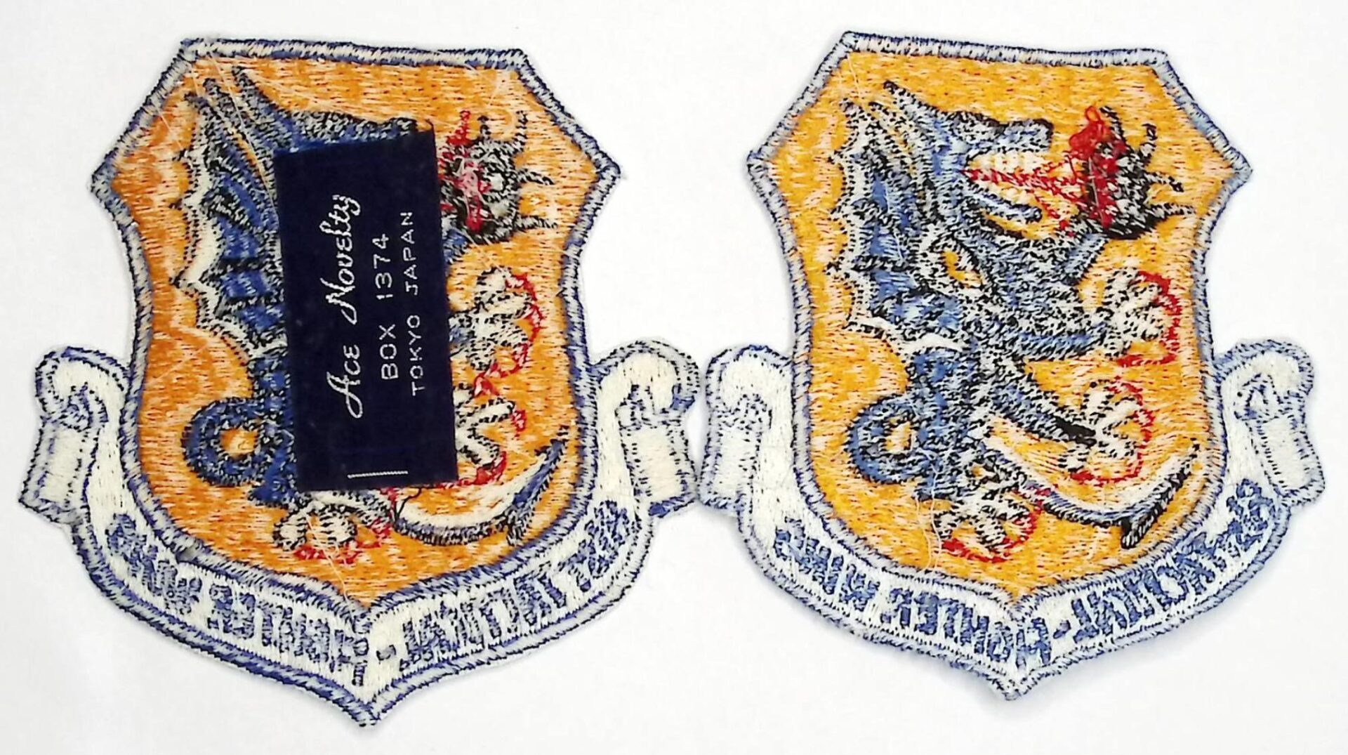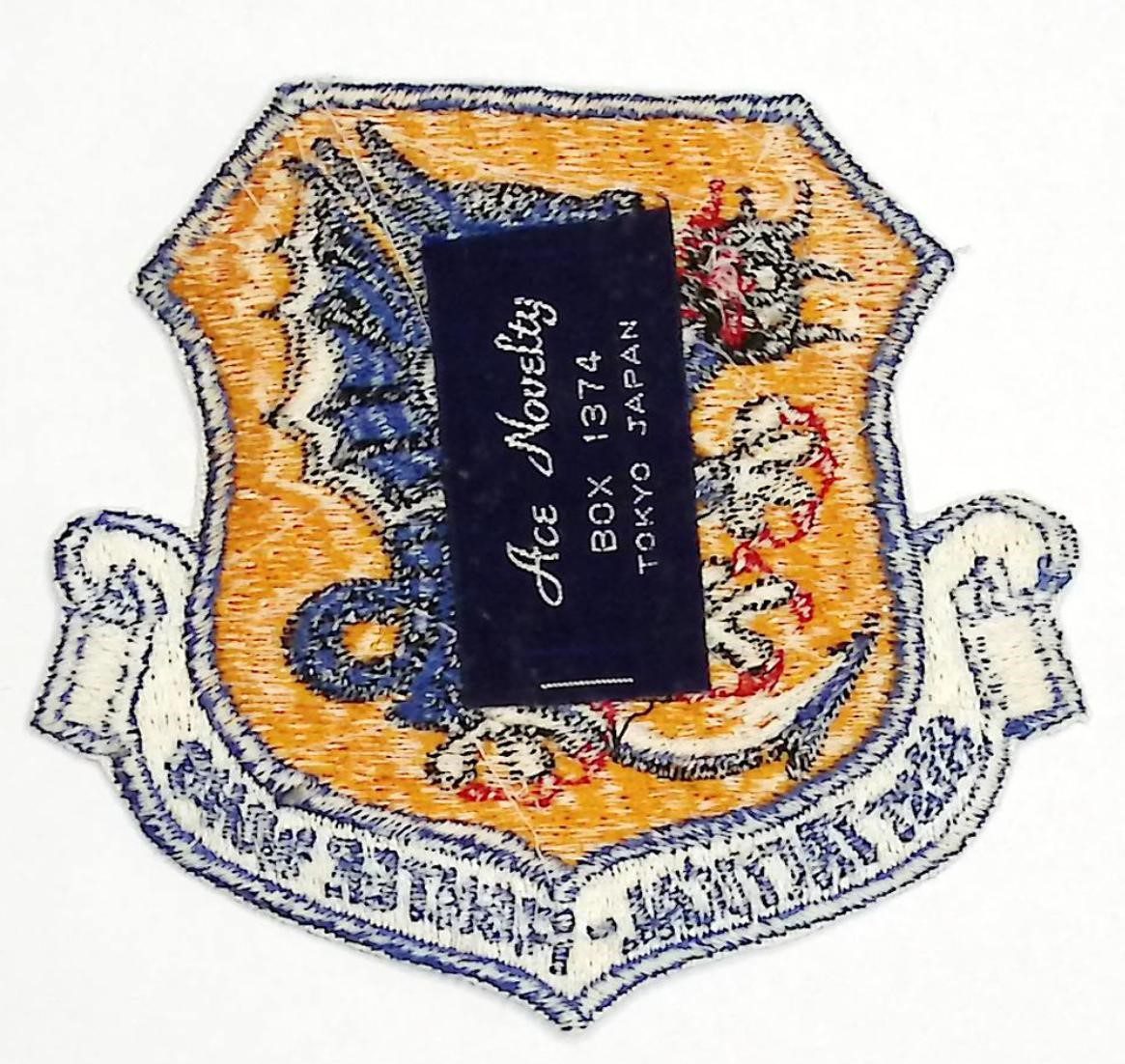 USAF Patch USAFE 81 TFW Tactical Fighter Wing Crest RAF Bentwaters Woodbridge F 101 Voodoo Early 1960s Japanese Ace Novelty Label Fully emb cut edge 91 by 92mm three and nine sixteenth by three and nine sixteenths