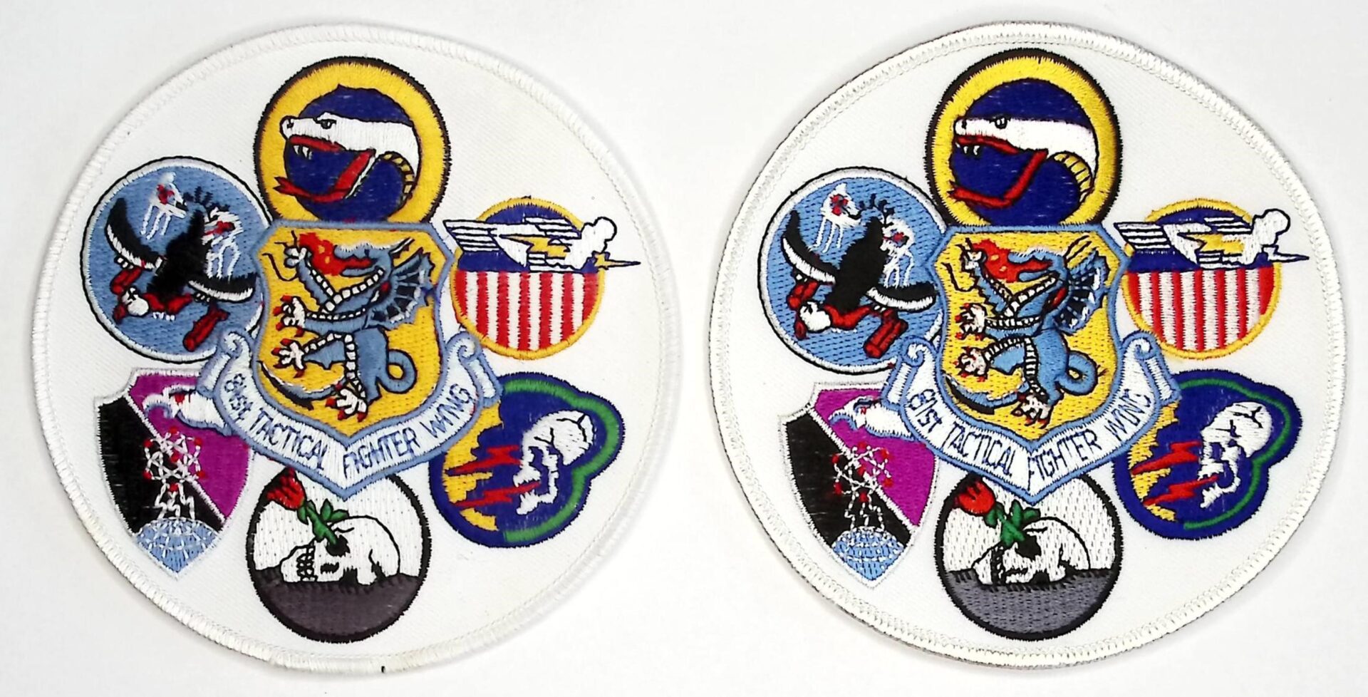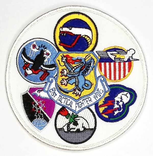 USAF Patch USAFE 81 TFW Tactical Fighter Wing Gaggle 6 Squadrons 78 91 92 509 510 511 TFS A 10 Warthog Woodbridge Bentwaters 1987 emb on twill mer edge 113mm four and seven sixteenth inches diameter
