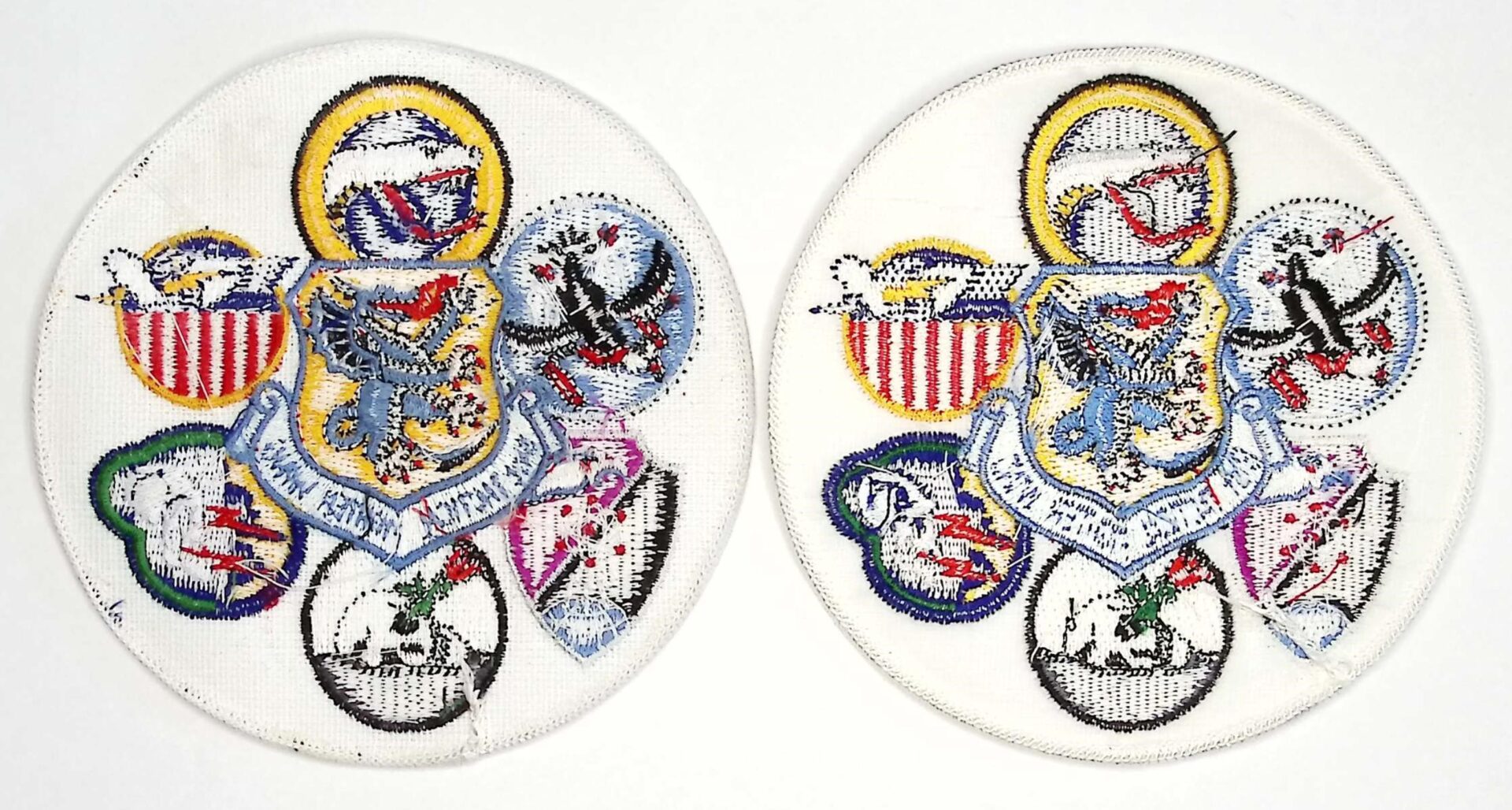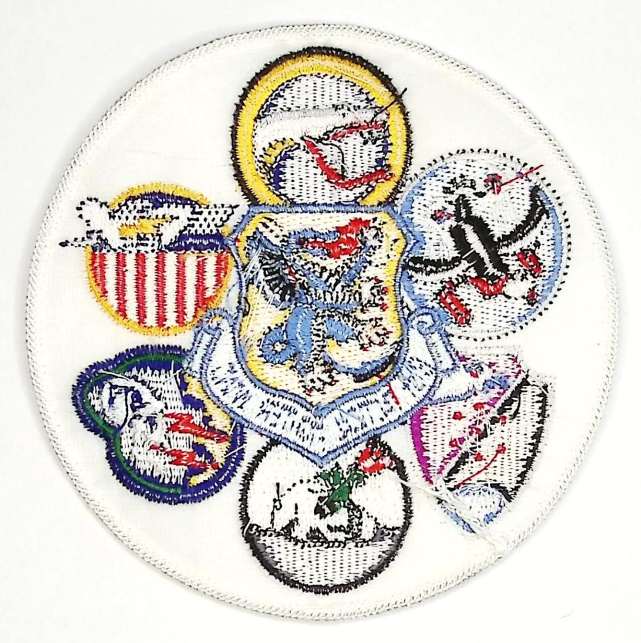 USAF Patch USAFE 81 TFW Tactical Fighter Wing Gaggle 6 Squadrons 78 91 92 509 510 511 TFS A 10 Warthog RAF Woodbridge Bentwaters 1987 embroidered on twill paper covered gauze back merrowed edge 113mm four and seven sixteenth inches diameter.