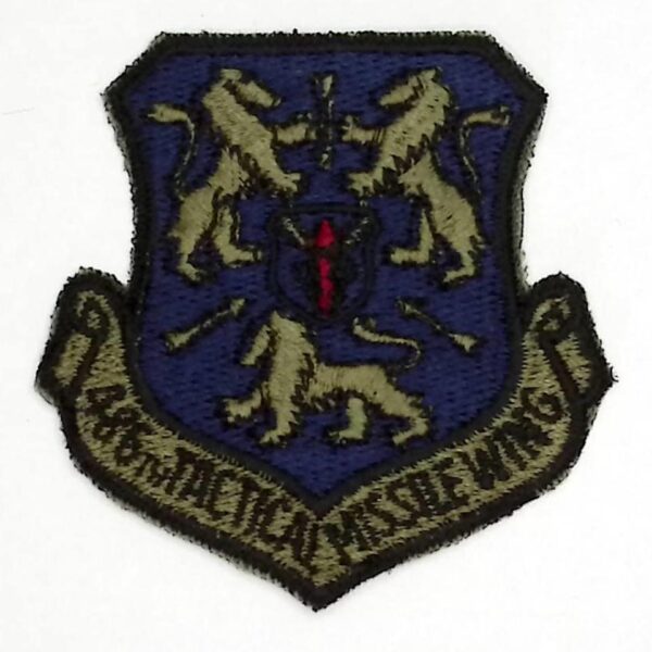 USAF 486 TMW Patch USAFE GLCM 486 TMW Tactical Missile Wing BMG 109G 1987 Ground Launched Cruise Missile Woensdrecht AB Netherlands Subdued fully embroidered cut edge 75mm by 76mm three inches by three inches.